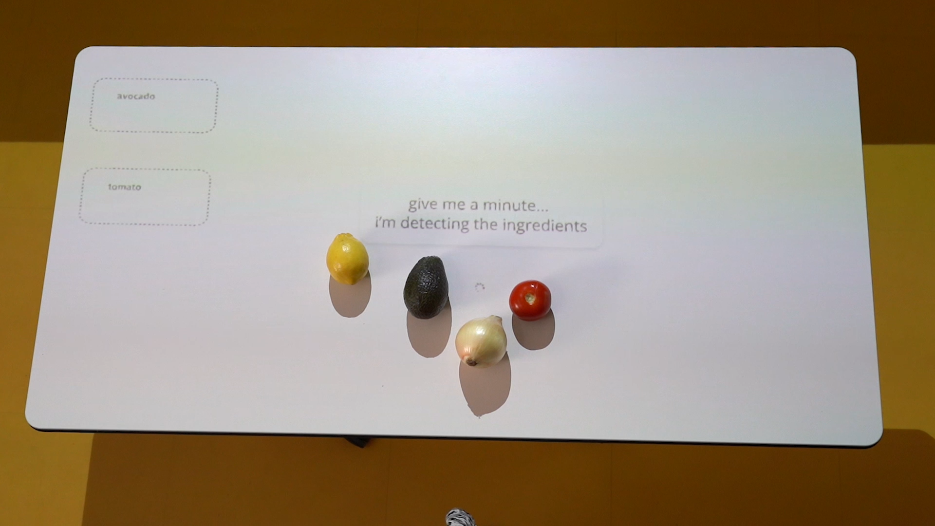 Tangible User Interfaces (TUI) provide the user with physical representations of digital information with the aim to overcome the limitations of screen-based interfaces. Although many compelling demonstrations of TUIs exist in the literature, there is a lack of research on TUIs intended for daily two-handed tasks and processes, such as cooking. In response to this gap, we propose SPICE (Smart Projection Interface for Cooking Enhancement). SPICE investigates TUIs in a kitchen setting, aiming to transform the recipe following experience from simply text-based to tangibly interactive. SPICE includes a tracking system, an agent-based software, and vision large language models to create and interpret a kitchen environment where recipe information is projected directly onto the cooking surface.